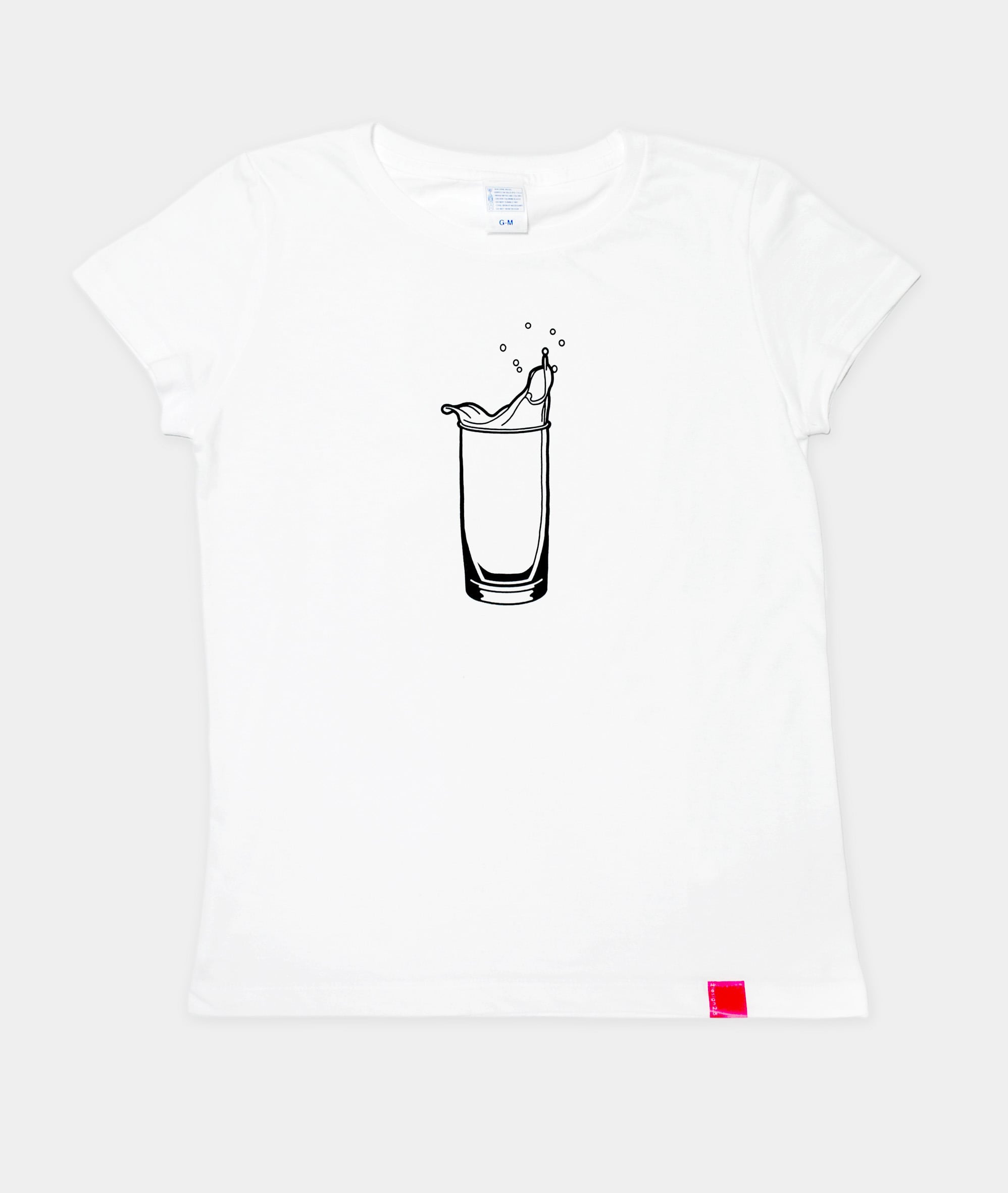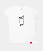 グラスから溢れるミルクのプリントが可愛らしいTシャツ。