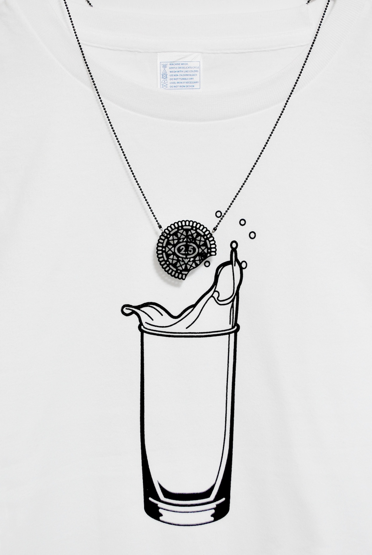 ネックレス「クッキー」と一緒に着用すると、クッキーをミルクへダンクするような、また違ったデザインが楽しめるユーモラスな一枚。